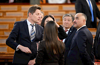 Бишкек, 02.09.24. /Кабар/. Бүгүн, 2-сентябрда Жогорку Кеңештин жыйынында депутаттар Тыналиев Айжигит Казакбаевич, Марипов Бакытбек Асамидинович, Эгембердиев Арсланбек Абдыкайымович, Бердиев Аккулу Тагаевич, Айдаралиев Эрнис Шарабидинович ант берди.