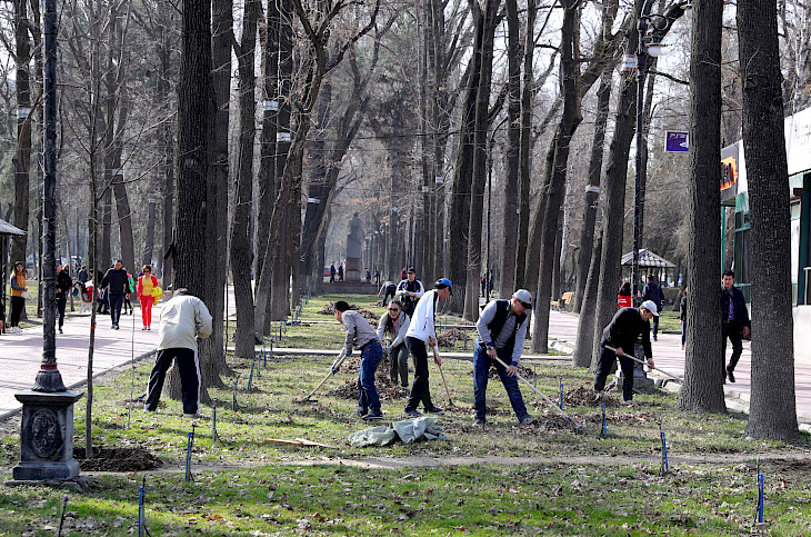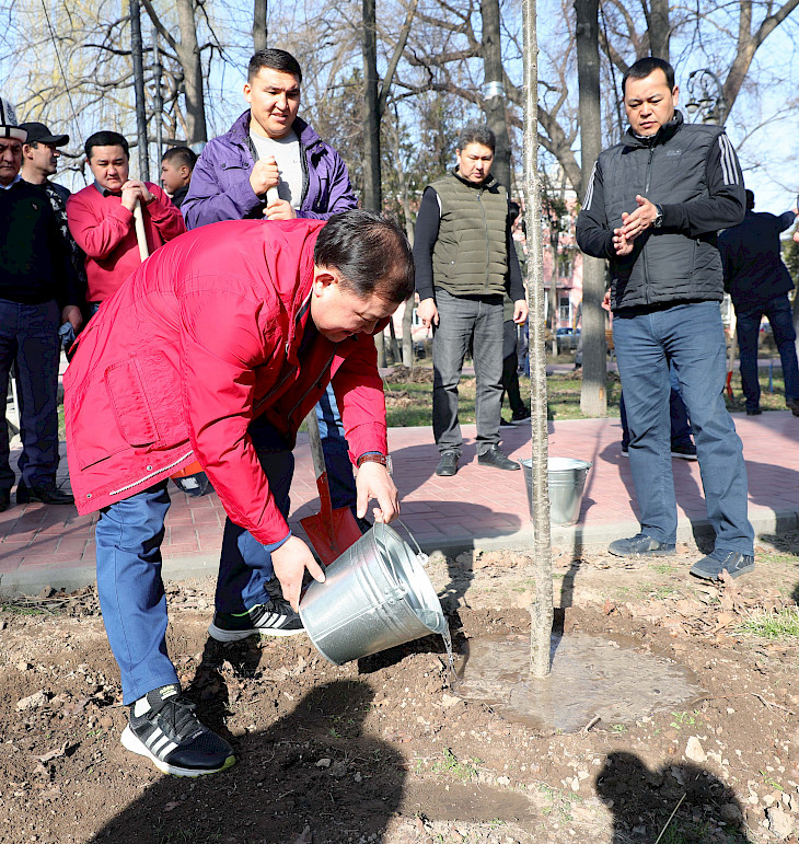 Иш-чара шаарлардагы жана республиканын калктуу пунктарындагы санитардык абалды жакшыртуу, көрктөндүрүү жана бак-дарактуу аймактардын аянтын кеңейтүү багытында жарыяланган үч айлыктын алкагында өткөрүлдү.