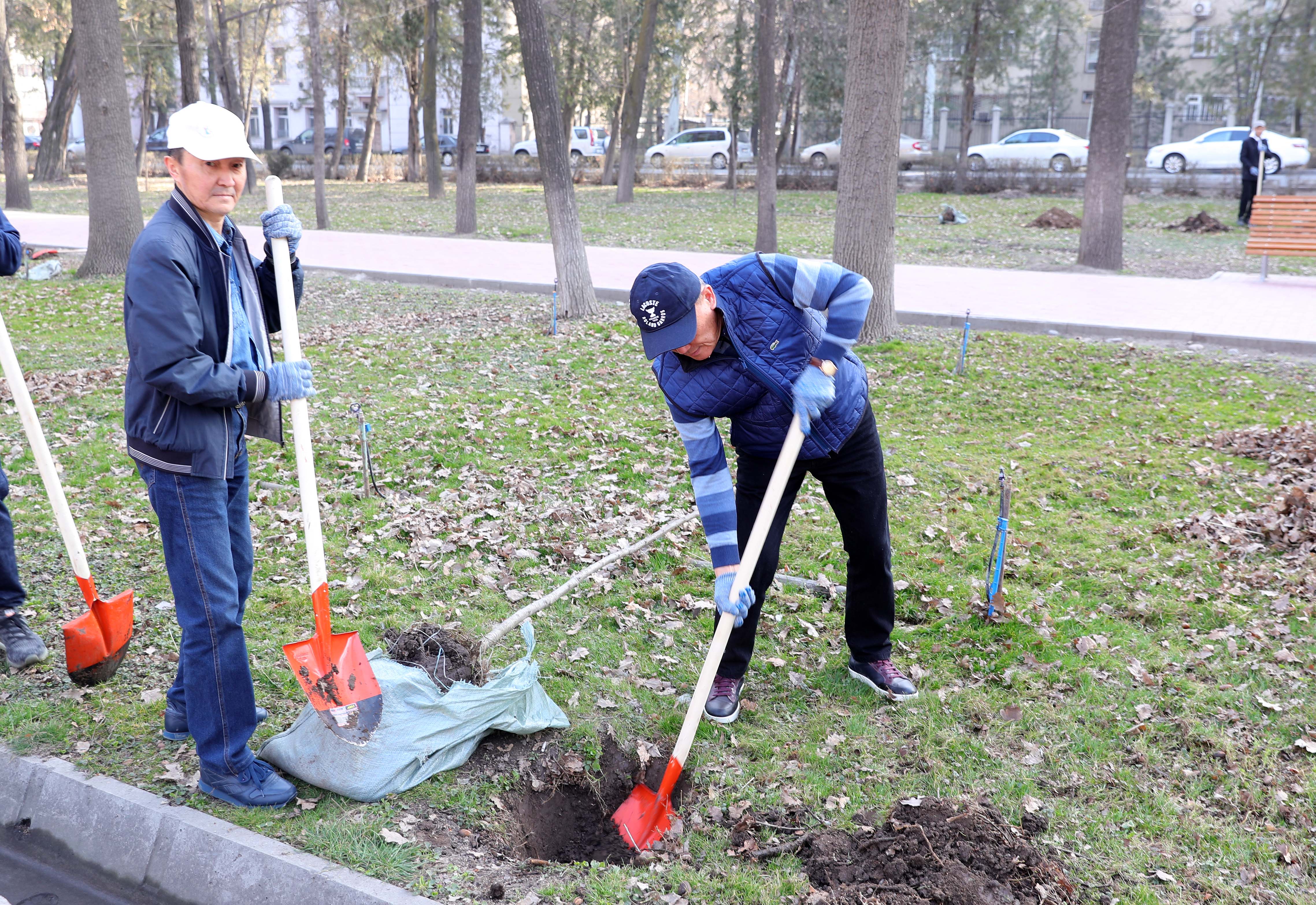 Ишембиликке катышкандар Эркиндик бульварына 350 эмен көчөтүн отургузуп, жол жээктериндеги таштандыларды тазалашты.