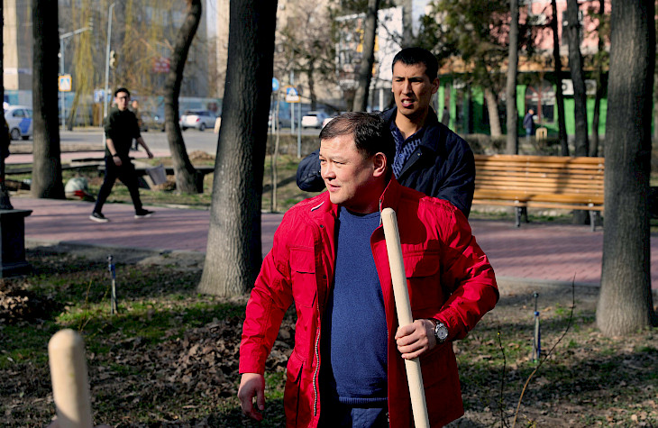 Бишкек, 16.03.19. /Кабар/. Бүгүн, 16-мартта Төрага Дастанбек Жумабеков баштаган КРнын Жогорку Кеӊешинин депутаттары, Аппараттын жана Иш башкармалыктын кызматкерлери борбор калаанын Эркиндик бульварында уюштурулган ишембиликке катышты.