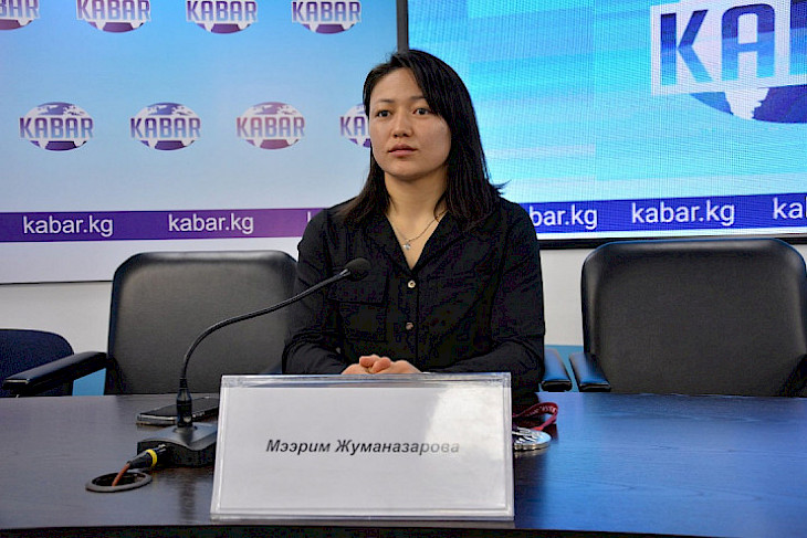 Бишкек, 28.04.22. /Адил Төлөгөнов - Кабар/. “Кабар” агенттигиндеги маалымат жыйынында кыз-келиндер арасында күрөш боюнча дүйнө чемпиону Мээрим Жуманазарова Азия мелдешиндеги күрөшү тууралуу пикирин билдирди.