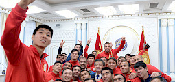 Бишкек, 07.06.21. /Адил Төлөгөнов - Кабар/. Футбол боюнча Кыргызстандын курама командасынын машыктыруучу Александр Крестинин “Ак шумкарлардын” Монголиянын командасына ...