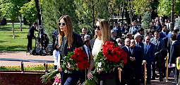 Жээнбеков Ташкентте Ислам Каримовдун эстелигине гүл койду