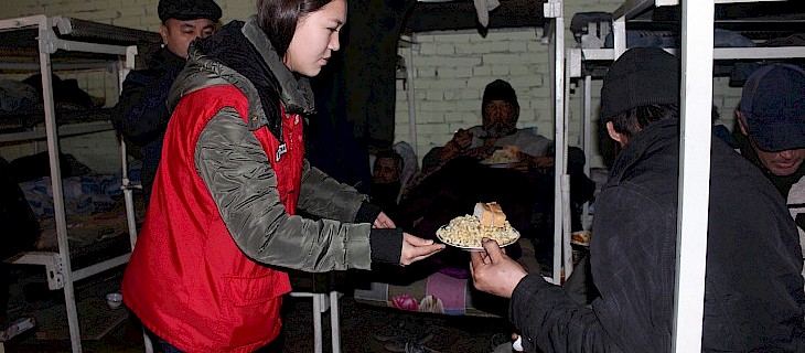 Бишкекте туруктуу жашаган жайы жок 70 адамга ысык тамак тар...