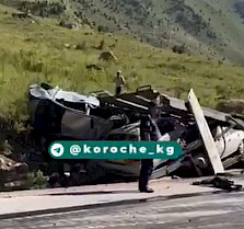 Чычкан капчыгайында унаа ташыган трал жол кырсыгын...