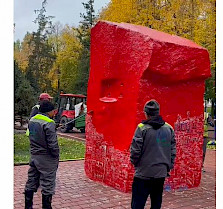 Бишкектеги кызыл таш арт-обьектиси жууп-тазаланды
