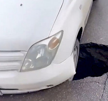 Бишкекте асфальт оюлуп, унаа чуңкурга түшүп кетти ...