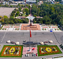 Ош шаарынын борбордук аянтында сейил бак жана фонт...