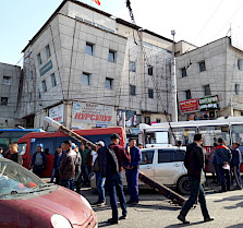 Ош базарда жүргүнчү ташыган маршруткага столба кул...