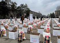 Талас шаарында аз камсыз болгон үй-бүлөлөргө азык-түлүк таратылды