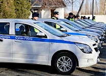 Камчыбек Ташиев Сузак райондук милициясына 12 автоунаанын ачкычын тапшырды