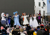 Оштун борбордук аянтында Жаңы жылга карата майрамдык концерт өтүүдө. Сүрөттөр